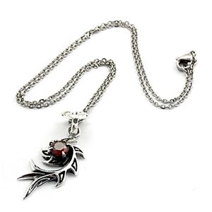 炎のモチーフをしたペンダントがクールな胸元を!
