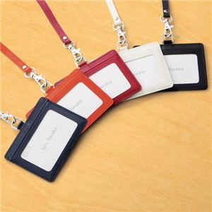 (まとめ) TANOSEE 合皮製ネームカードホルダー ヨコ型 ストラップ付 オレンジ 1個 【×10セット】 |
