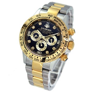 J.HARRISON 8石天然ダイヤモンド付自動巻きウォッチ ゴールド |